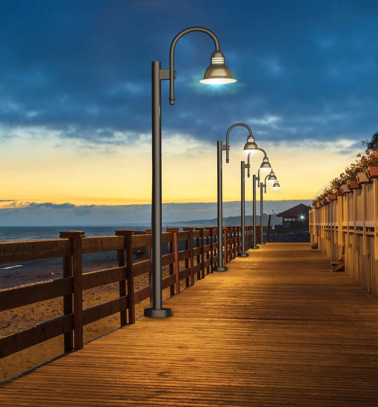 Created to illuminate exterior spaces such as walkways, sidewalks, parking lots and other pedestrian scale areas.