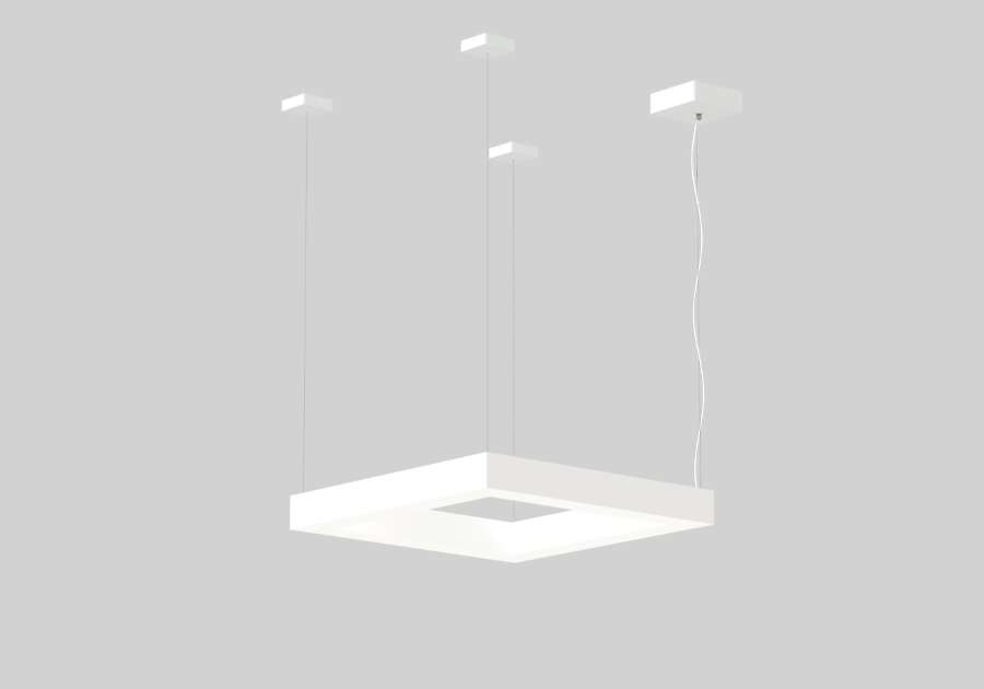 Luminaire consists of a square-shaped acrylic lens with distinct corners encasing the light source. Gives a soft glow with downlight as standard.