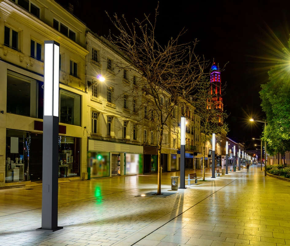 Created to illuminate exterior spaces such as courtyards, terraces, pathways, walkways, and other pedestrian scale areas.