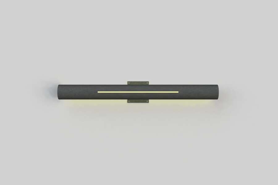 Luminaire is made of aluminum extrusion with a concave front that has a simple slit design and emits a subtle back glow.