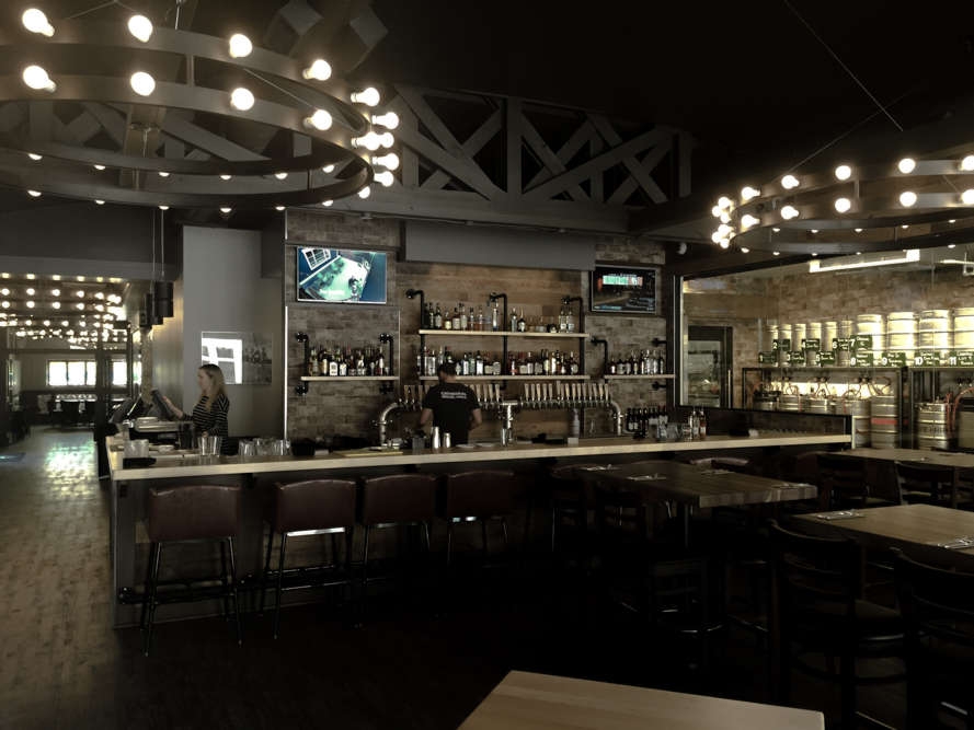 Solera designed custom circular ring pendants with base holders for a pub in Regina, SK. These rings were 2 tiered, and add a distinct ambiance to the social space. Base holders can be specified for fluorescent or LED lamps.