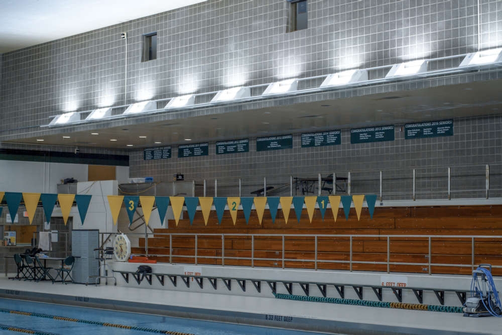 Solera provided custom Delta Rail systems for the NCAA pool at SUNY Oswego. The rails, in this case, were wall mounted, whereas, in standard situations, they would be suspended with aircraft cables. With adjustable lamp modules, the system uses indirect lighting to provide a minimum of 50 foot candles on the water.